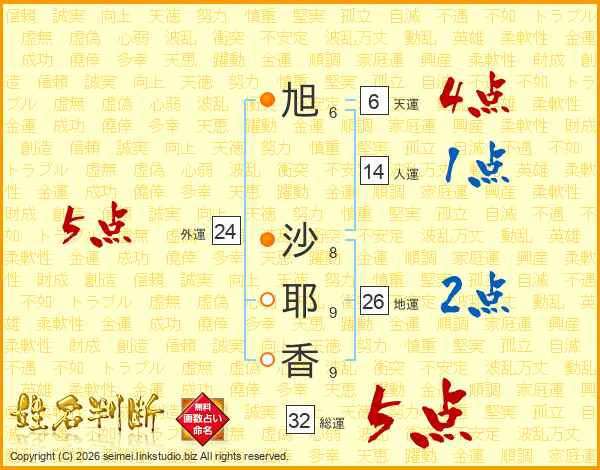 旭沙耶香さんの地運は26画の2点!