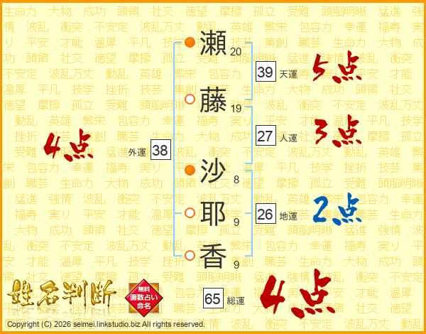 瀬藤沙耶香さんの総運は65画の4点!