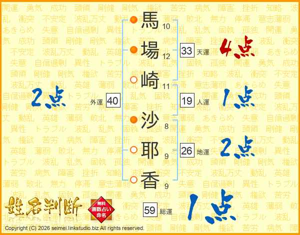 馬場崎沙耶香さんの地運は26画の2点!