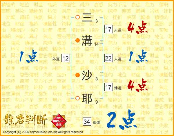 三溝沙耶さんの天運は17画の4点!