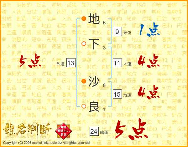 地下沙良さんの総運は24画の5点!