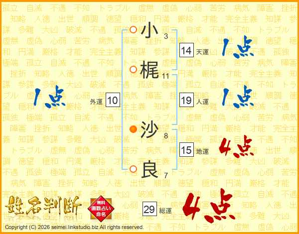 小梶沙良さんの総運は29画の4点!