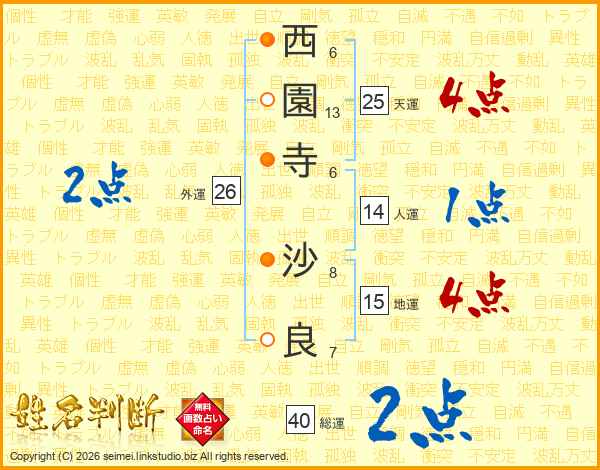西園寺沙良さんの総運は40画の2点!
