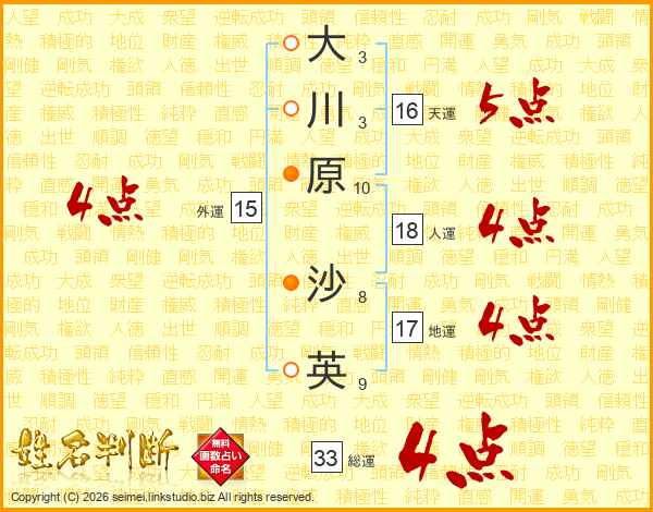 大(3画)川(3画)原(10画) 沙(8画)英(9画)