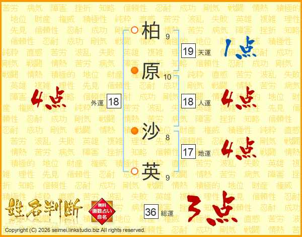 柏原沙英さんの外運は18画の4点!