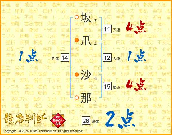 坂爪沙那さんの総運は26画の2点!