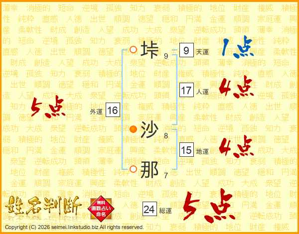 垰沙那さんの総運は24画の5点!