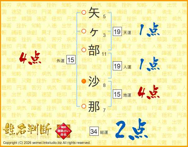 矢ヶ部沙那さんの外運は15画の4点!