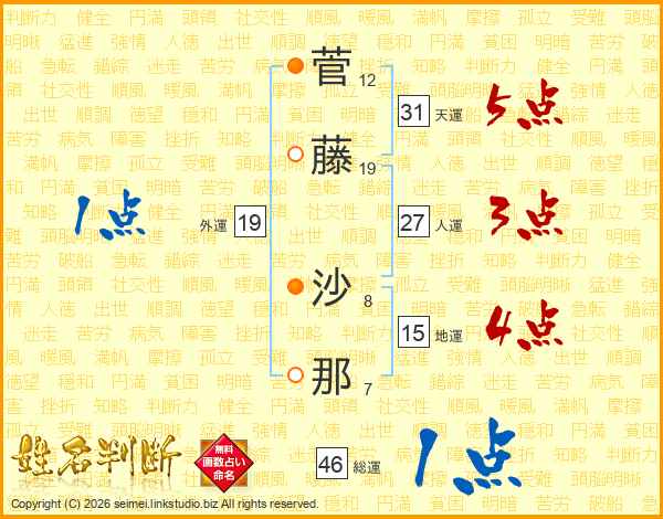 菅藤沙那さんの天運は31画の5点!