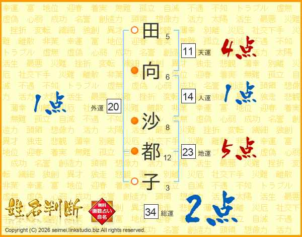 田向沙都子さんの総運は34画の2点!