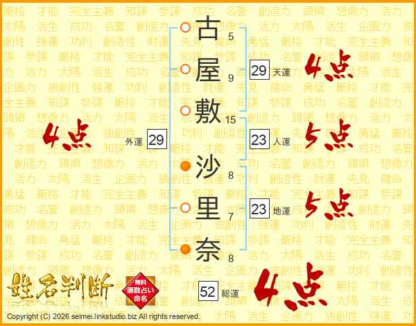 古屋敷沙里奈さんの外運は29画の4点!