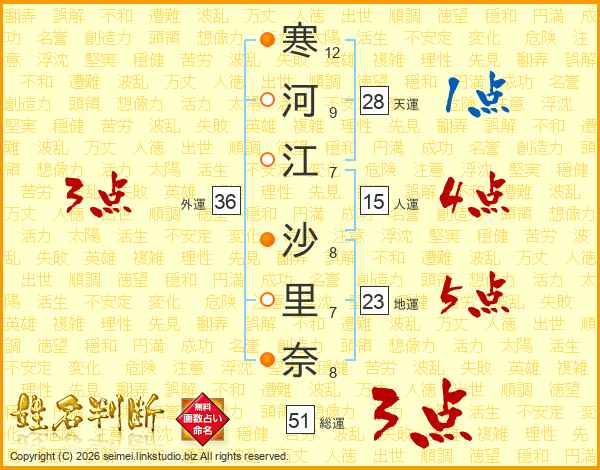 寒河江沙里奈さんの総運は51画の3点!