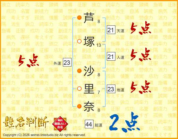 芦塚沙里奈さんの総運は44画の2点!