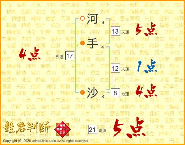 河手沙さんの総運は21画の5点!