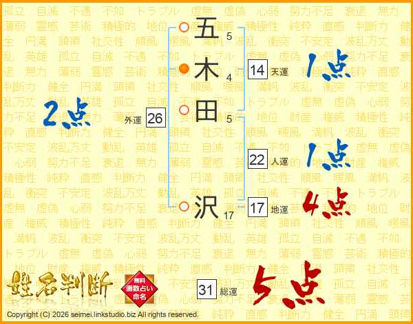 五木田沢さんの総運は31画の5点!