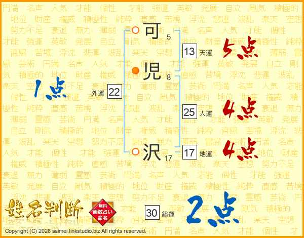 可(5画)児(8画) 沢(17画)