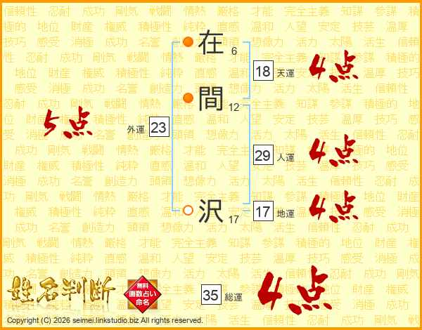 在間沢さんの総運は35画の4点!
