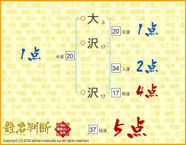 大沢沢さんの総運は37画の5点!