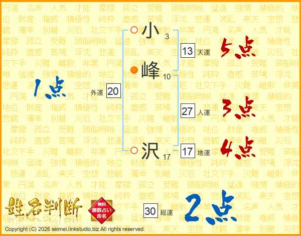 小峰沢さんの総運は30画の2点!