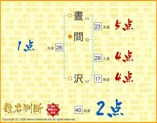晝間沢さんの総運は40画の2点!