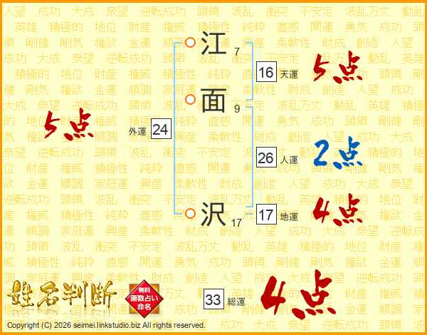 江面沢さんの総運は33画の4点!