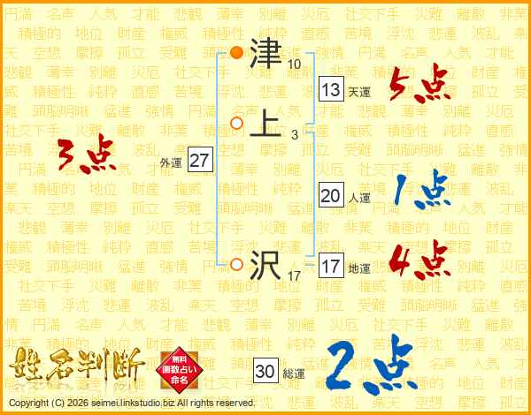 津上沢さんの総運は30画の2点!