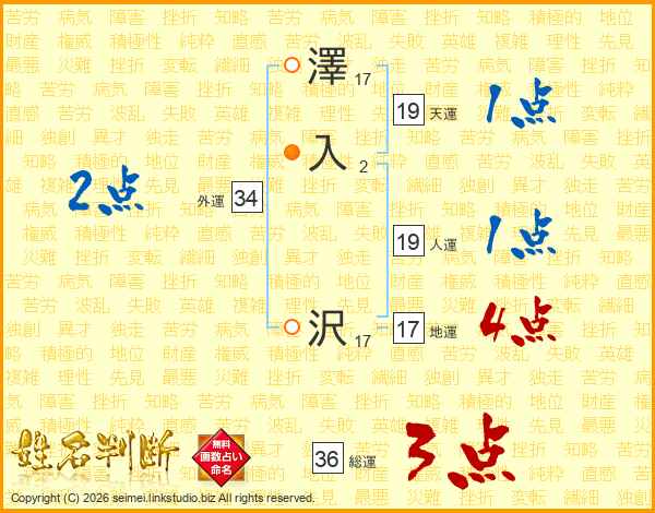 澤入沢さんの天運は19画の1点!