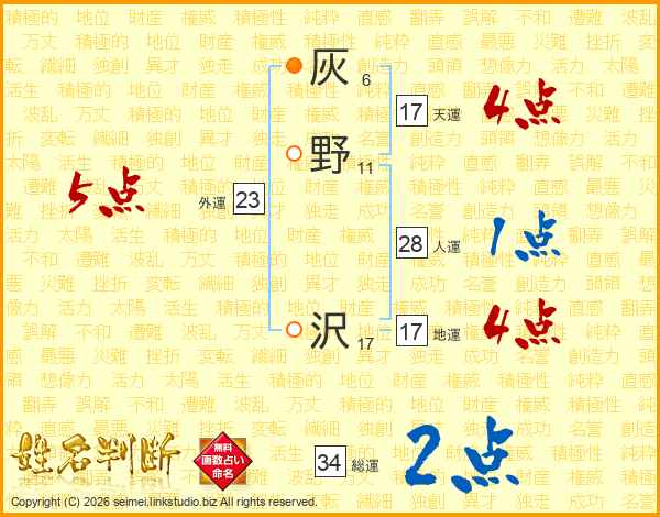 灰野沢さんの総運は34画の2点!