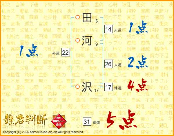 田河沢さんの総運は31画の5点!