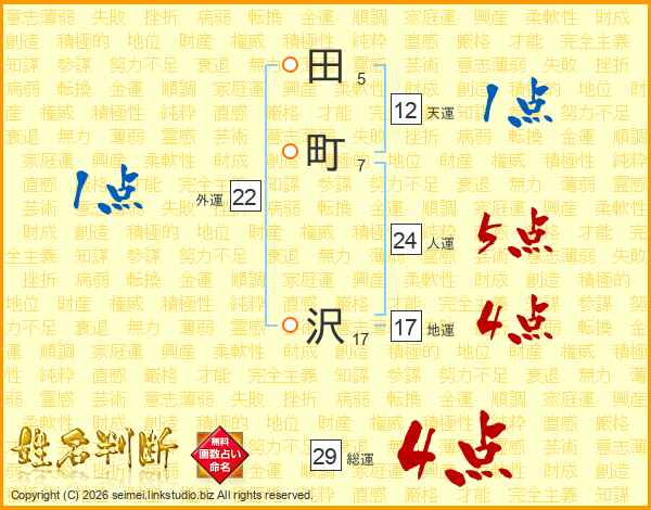 田町沢さんの総運は29画の4点!