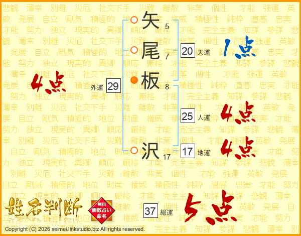 矢(5画)尾(7画)板(8画) 沢(17画)