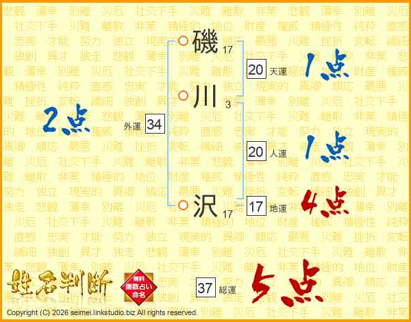 磯川沢さんの総運は37画の5点!
