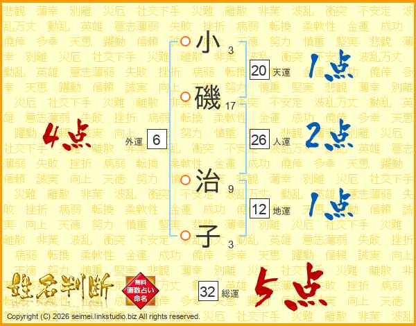 小磯治子さんの総運は32画の5点!