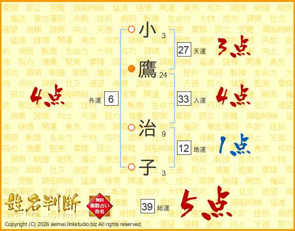 小鷹治子さんの総運は39画の5点!