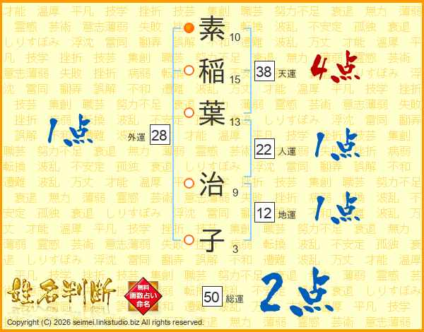 素稲葉治子さんの総運は50画の2点!