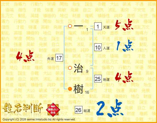 一(1画) 治(9画)樹(16画)