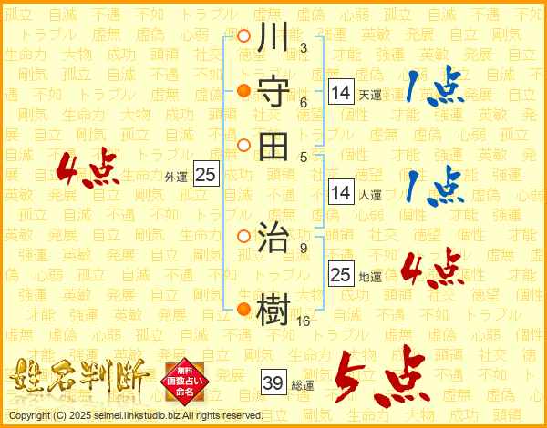 川守田治樹さんの総運は39画の5点!