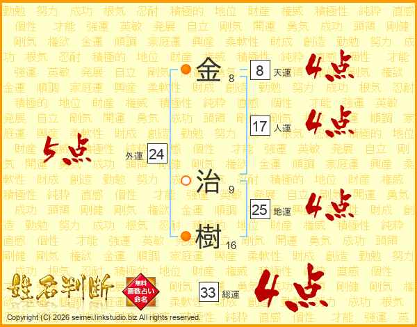 金治樹さんの総運は33画の4点!