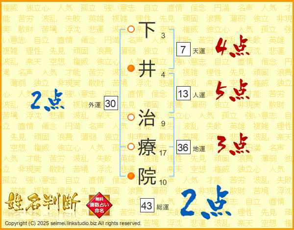下井治療院さんの人運は13画の5点!