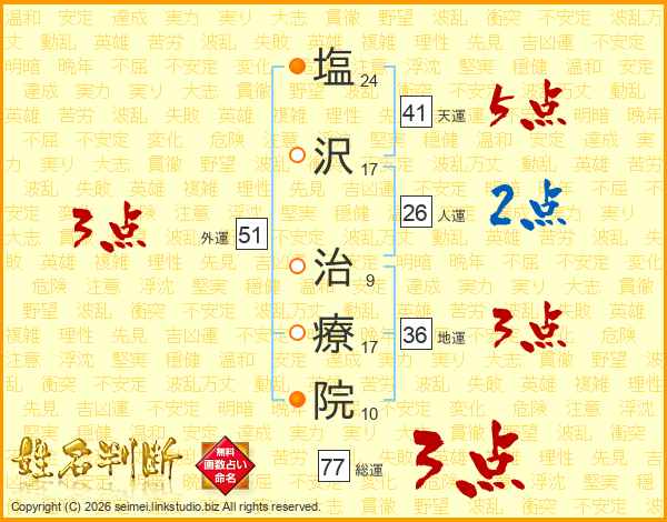 塩(24画)沢(17画) 治(9画)療(17画)院(10画)