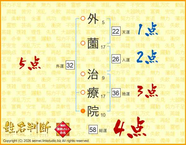 外(5画)薗(17画) 治(9画)療(17画)院(10画)