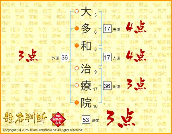 大(3画)多(6画)和(8画) 治(9画)療(17画)院(10画)