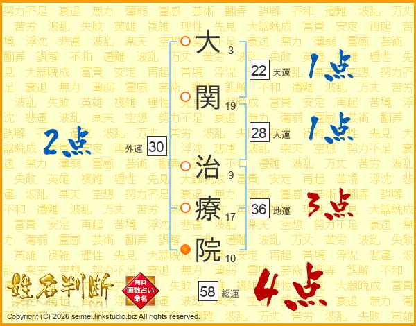 大関治療院さんの総運は58画の4点!