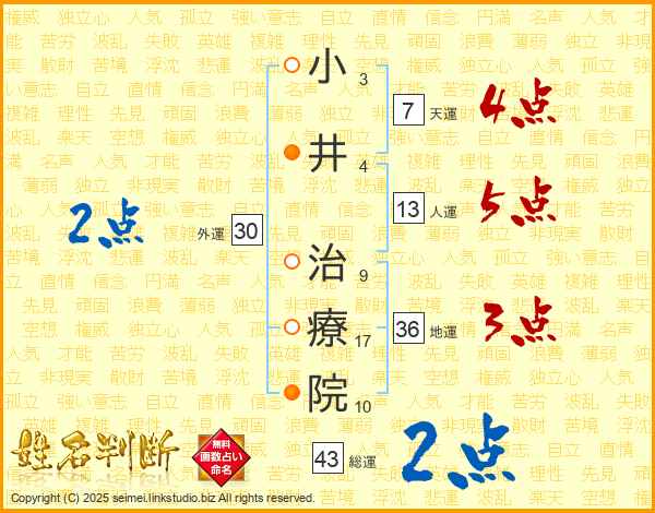 小(3画)井(4画) 治(9画)療(17画)院(10画)