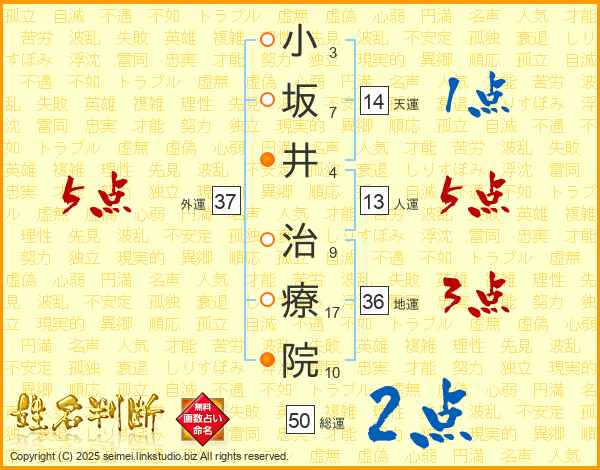 小(3画)坂(7画)井(4画) 治(9画)療(17画)院(10画)