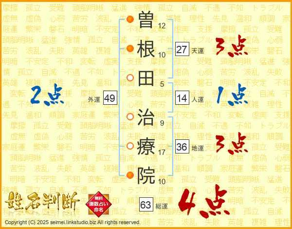 曽根田治療院さんの総運は63画の4点!
