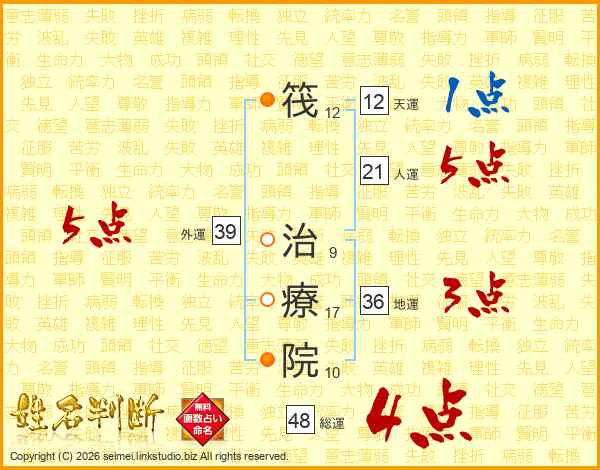筏治療院さんの人運は21画の5点!
