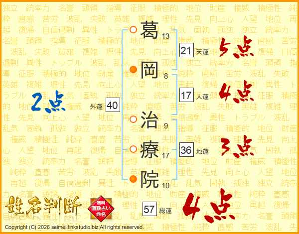 葛(13画)岡(8画) 治(9画)療(17画)院(10画)