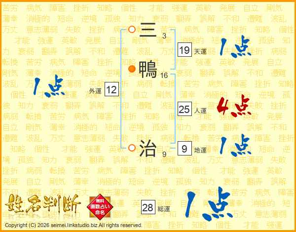 三鴨治さんの人運は25画の4点!