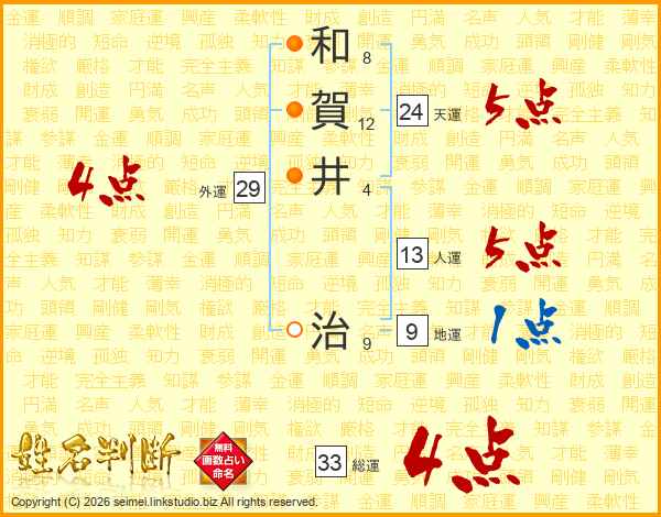 和賀井治さんの天運は24画の5点!